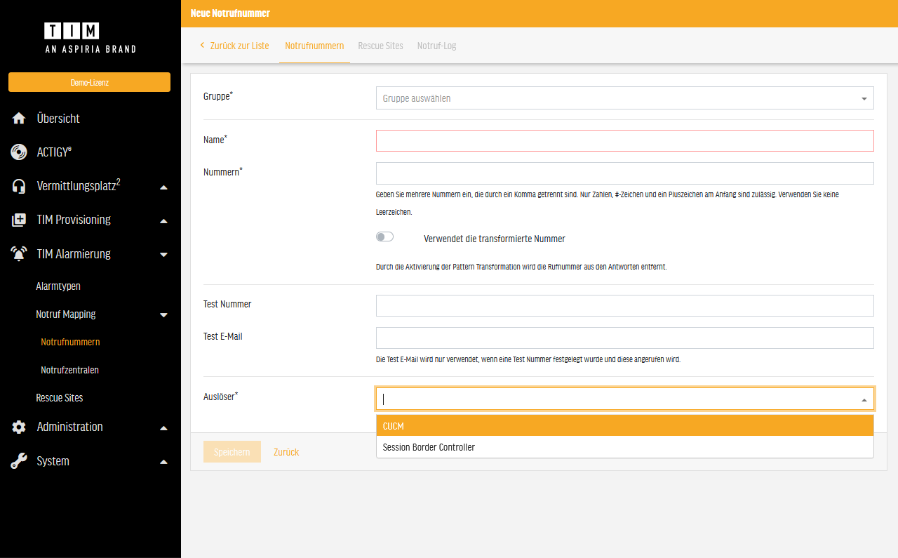 TIM8 Notruf Mapping stellt sicher, dass auch bei Verwendung eines zentralen SIP Trunks ausgehende Notrufe immer an die richtige und zuständige Notrufleitstelle geleitet werden. Dabei bleibt die gesetzliche Vorgabe der Rückrufbarkeit des Notrufs gewährleistet. Zudem können beliebig viele Standorte eingerichtet werden. Unterstützend kann eine E-Mail an entsprechende Zentralen (Pförtner, Wache, zentrale Verwaltung, etc.) gesendet werden. Diese E-Mail enthält den genauen Ort der Alarmierung und hilft den Einsatzkräften, schneller an den Unglücksort zu gelangen. Unterstützt werden Umgebungen mit Cisco Unified Communications Manager oder Microsoft Teams. Die Lizenzierung erfolgt nach Anzahl aller Objekte in den Rescue Sites pro Mandant (keine Mehrfachzählung). Mögliche Objekte sind alle Endgeräte, inklusive Softphones, mit registrierter IP-Adresse.